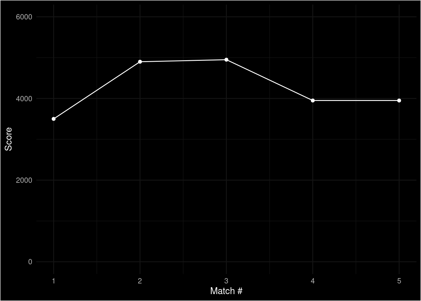 Two games were also played in time mode. For the time-mode version of the game, Gatai would still scan the board for the best moves, but then, if more than one move or move sequence is possible, try to make all of then, in a pattern that minimizes the risk for interference between the moves, and maximizes the likelihood of a high score. In this format Gatai was able to score as high as 7850, however, this measurement is of lesser interest, since it is mostly a function of Gatai’s ability to make moves fast, which in turn depends on the computer hardware rather than the AI implemented.